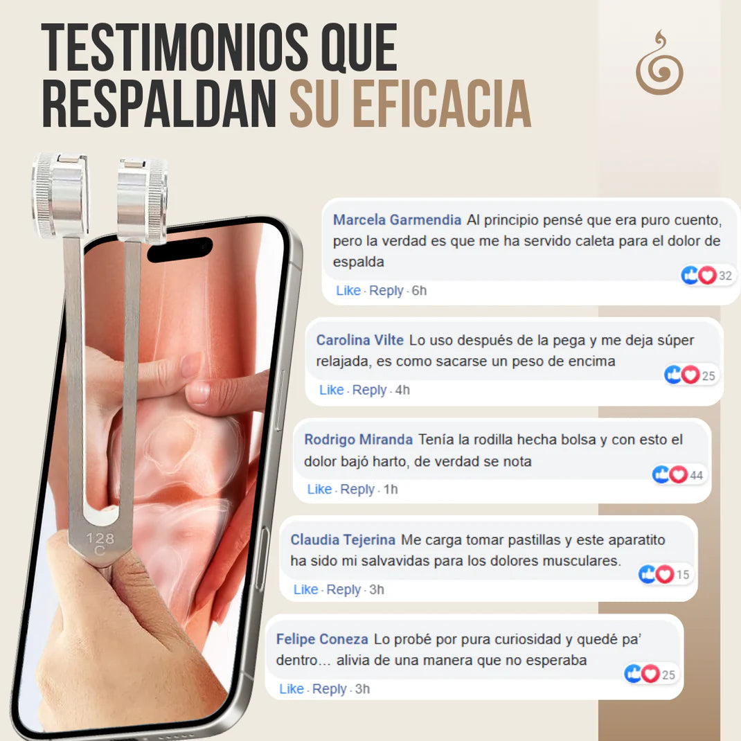 BioVibe™ utiliza vibraciones de alta precisión (128 Hz) para aliviar de forma localizada y profunda el dolor y la tensión muscular. Estimula las células y tejidos, favoreciendo la liberación de óxido nítrico, lo que mejora la circulación y reduce la inflamación. Es una solución natural, no invasiva y sin fármacos para el bienestar integral.